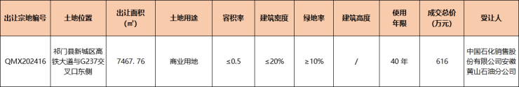 根据《招标拍卖挂牌出让国有建设用地使用权规定》(国土资源部令第39号),现将祁门县国有建设用地使用权挂牌出让成交结果公示如下: