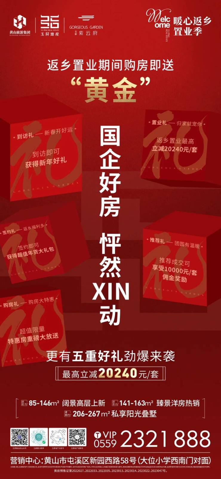 国企好房,怦然心动!玉屏紫云府返乡置业期间购房即送“黄金”,更有五重好礼劲爆来袭,最高立减20240元/套。