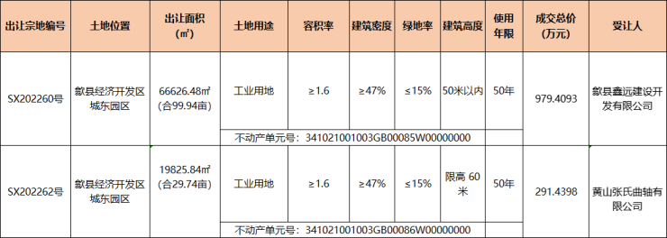 根据《招标拍卖挂牌出让国有建设用地使用权规定》,现将歙县国有建设用地使用权挂牌出让成交结果公示如下:
