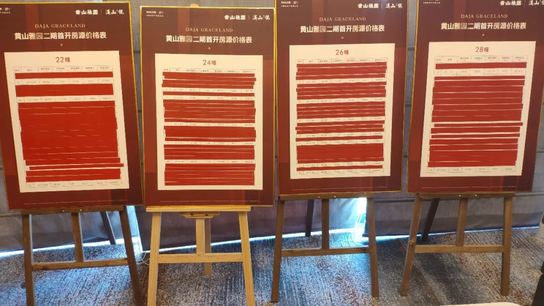 黄山雅园·溪山悦全线飘红的销控板,异常醒目。尽管开盘价格高于周边项目,还是深受广大购房者特别是黄山人民的追捧,首开大捷,劲销九成。