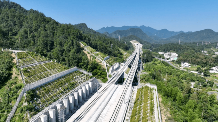 据了解,昌景黄铁路西起江西省南昌市南昌东站,终点为黄山市黄山北站,在黟县东站与池黄铁路共站并线后至黄山北站,与杭黄铁路贯通至上海方向,形成上海至昆明的沪昆铁路重要辅助通道,正线全长289.8公里,总投资470.45亿元,设计时速350km/h。目前昌景黄铁路黟县段基本建设完成,已通过静态验收,预计8月份进行动态验收。