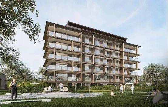 建筑立面区别于传统徽派建筑白墙黑瓦营造的中式意境,融合“安缦风”美学哲思,整体以暖色调为主,简洁的金属线条与玻璃材质组合,呈现出高端的奢华肌理。作为黄山首个安缦美学住区,紫荆书院以匹配城市精英的品味与格调,重新定义黄山品质人居时代。