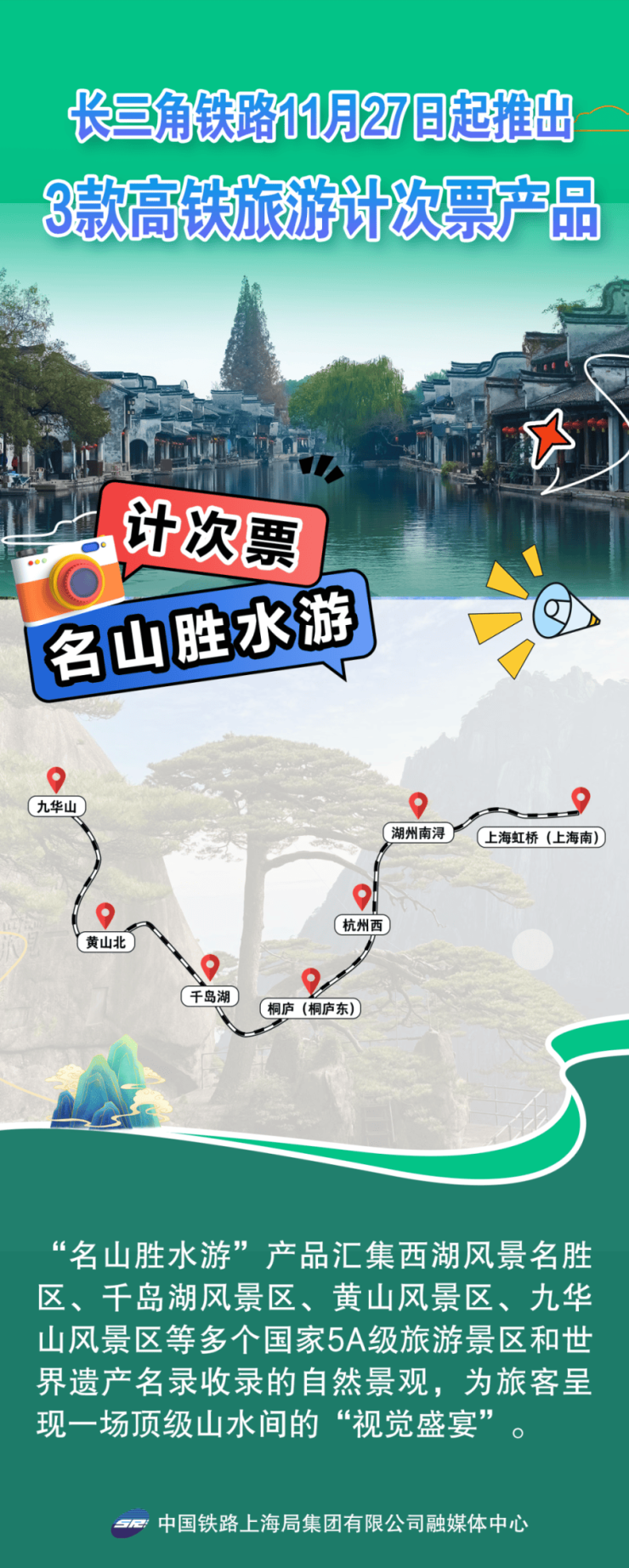小编举个例子告诉大家,可以分段购买从上海南站至杭州西站、杭州西站至千岛湖站、千岛湖站至九华山站,最后九华山站返回上海虹桥站的车票。分别单次购买高铁一等座的费用合计约为900元左右,而旅游计次票产品(一等座)则仅需765元左右。15天内使用,30天内未乘车的,产品自动失效并全额退款。