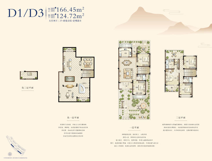 稀缺联排建面约151-166㎡,地下一层地上两层,更赠送约80-100㎡的超大私家花园,户型设计理念先进,在追求高品质生活的同时,总价不高。地下室一层层高3米,可做休闲娱乐场所,可直通地下停车场地下二层,层高2.7米。一层层高为3.8米,二层内部空间挑高,较高处是6.4米,较低处为4.2米(可加隔层,约30㎡可以使用)为客户提供更好的扩展空间,顶部开窗设计,有效的解决了客户因后期改造而担心的通风采光问题。