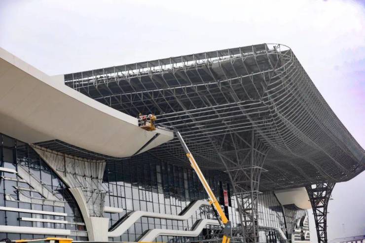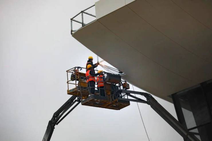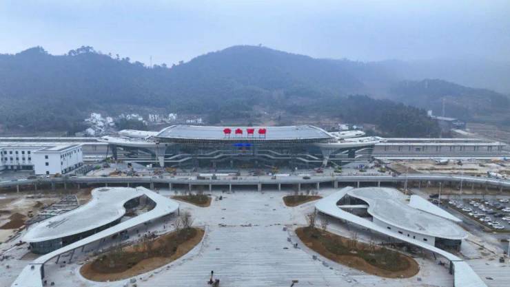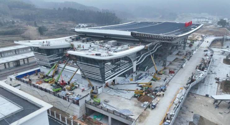 1月15日,地处黄山区甘棠镇兴村的高铁黄山西站,经过一年的建设,站房主体全部完工,站台、雨棚、地道主体结构和四电用房装修均已完成,工人们正在对站房的室内外进行装饰装修,为本月底具备验收条件全线推进。