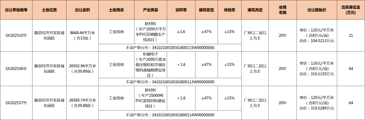 歙县3宗工业用地挂牌,出让面积共92.77亩