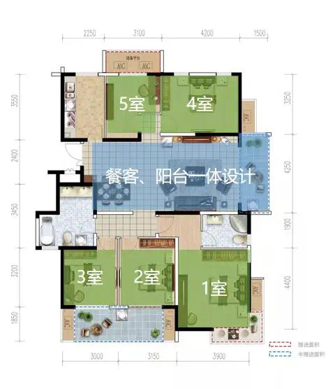 五室设计,顺应时代之势,迎接多胎时代来临,让每位家庭成员都拥有自己的一方小天地,更大的空间容纳生活更多想象。三卧朝南设计,尽享清风与阳光。