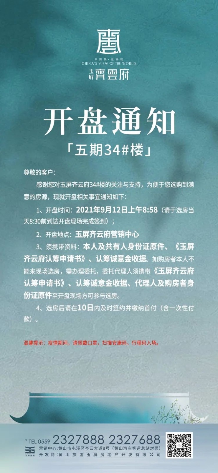 玉屏齐云府五期34#楼明日开启认筹,9月12日摇号开盘