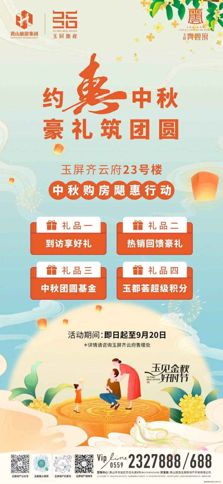 约惠中秋 豪礼筑团圆。玉屏齐云府23#楼中秋购房飓惠行动,四重好礼等你来!