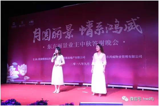 晚会现场人山人海,座无虚席,热闹非凡。同时,我们邀请到了区住建委物管办的胡慧主任、阳湖镇柏山社区的叶宏义书记、东方丽景业委会的陈胜华主任、王浩羽主任以及来自搜狐焦点、市民网、广播电台的领导代表,使得2018东方丽景业主中秋晚会瞩目非凡。