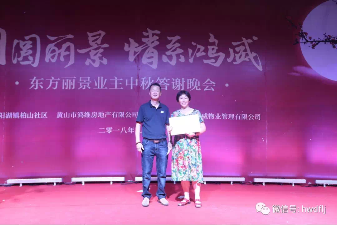 9月20日晚,在柏山社区、黄山市鸿维房地产有限公司和黄山市鸿威物业管理有限公司的共同筹办下,举办了规模盛大的2018东方丽景中秋业主答谢晚会,将一二三四期的左邻右舍聚集在一起共享视听盛宴。黄山鸿威秉承“建美好、筑未来”的企业文化,为广大业主丰富了社区生活,也为共建和谐社区奠定了坚实的基础。