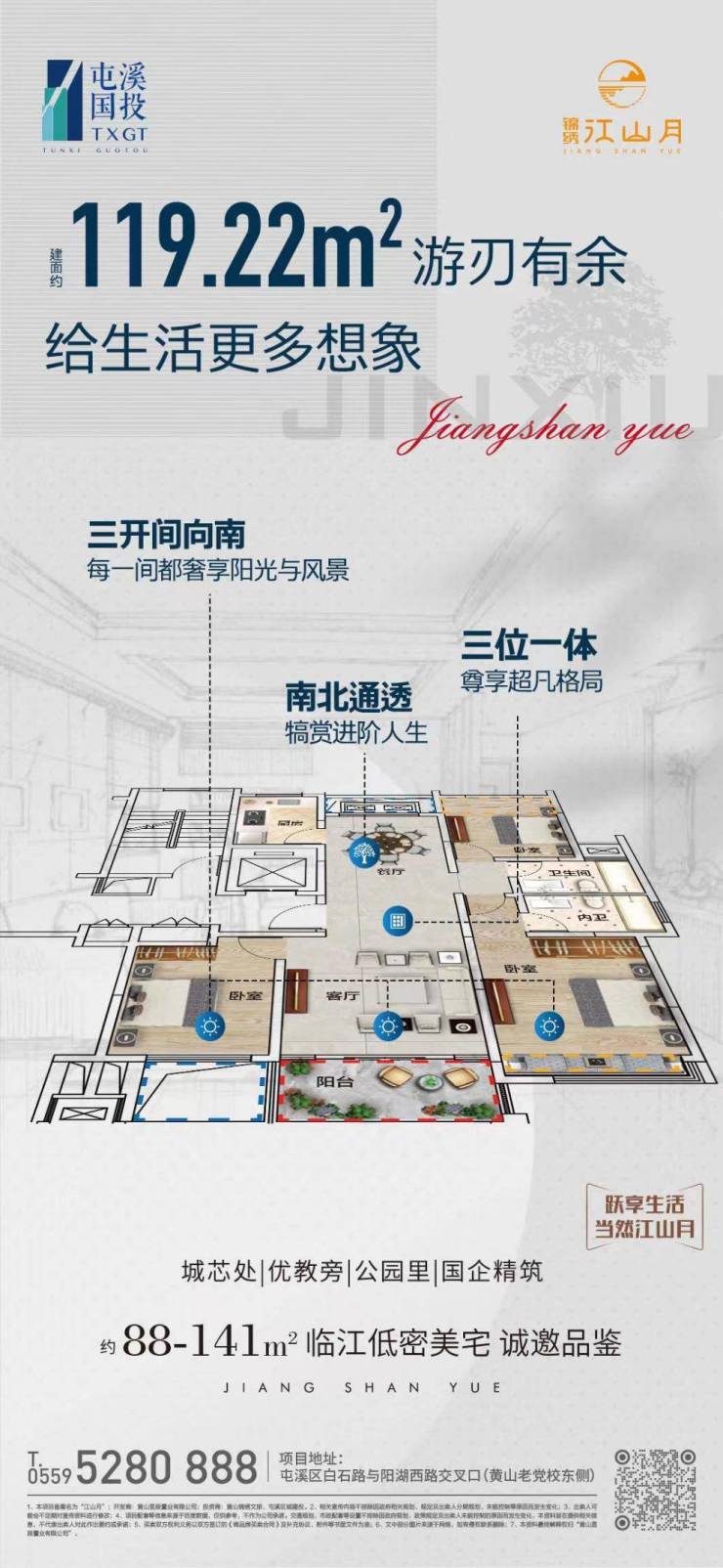 锦绣江山月是由屯溪国投、锦绣集团联袂打造的匠心力作,项目择址屯溪区新安江南岸老阳湖核心位置,接驳新安大道、徽州大道,立体交通路网。坐享街角公园、江心洲公园、南滨江景观带等生态资源,元一、阳湖农贸市场、百大商贸城、老街等商圈配套环伺。臻质美学作品,建面约88-141㎡双匠精筑,营造都市质感生活。总规划1幢6层叠墅、3幢11层及10幢14层小高层住宅。