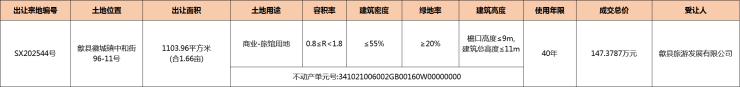 歙县徽城镇1宗商业旅馆用地成交