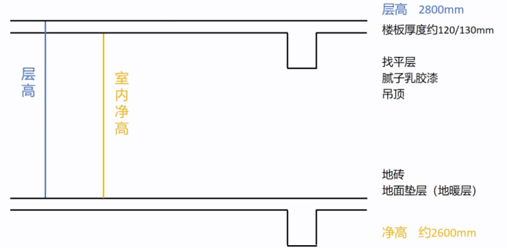 2.8米层高住宅,在装修过程中,吊顶约占15公分;铺设地板约占5-6公分;在完成之后,空间高度多在2.6米以内,大大降低居住品质。