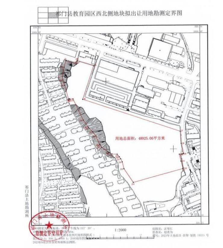 10月20日,祁门县祁红国际大酒店南侧商住用地挂牌,宗地位于祁红国际大酒店南侧 ,出让总面积48925.06㎡(合73.39亩),出让总价7000万元,容积率1.0-1.8 ,其中商业建筑面积占总建筑面积的比例不超过5%。拍卖时间2023年11月20日15:30。