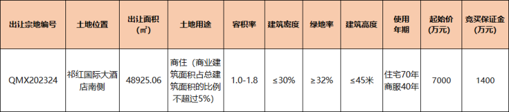 QMX202324号地块的竞买人须为具有房地产开发二级及二级以上资质的公司法人,除因拖欠土地成交价款等行为被纳入土地市场不良行为记录档案或国家法律法规另有规定外,均可参加报名本次挂牌出让。申请人均需单独申请,不接受联合申请。