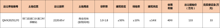 祁门县1宗商业用地挂牌出让