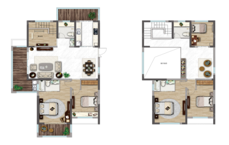 来到二层,又是另外一番天地,业主可以根据不同需求,打造成客卧、工作间、娱乐室或书房,随心百变。