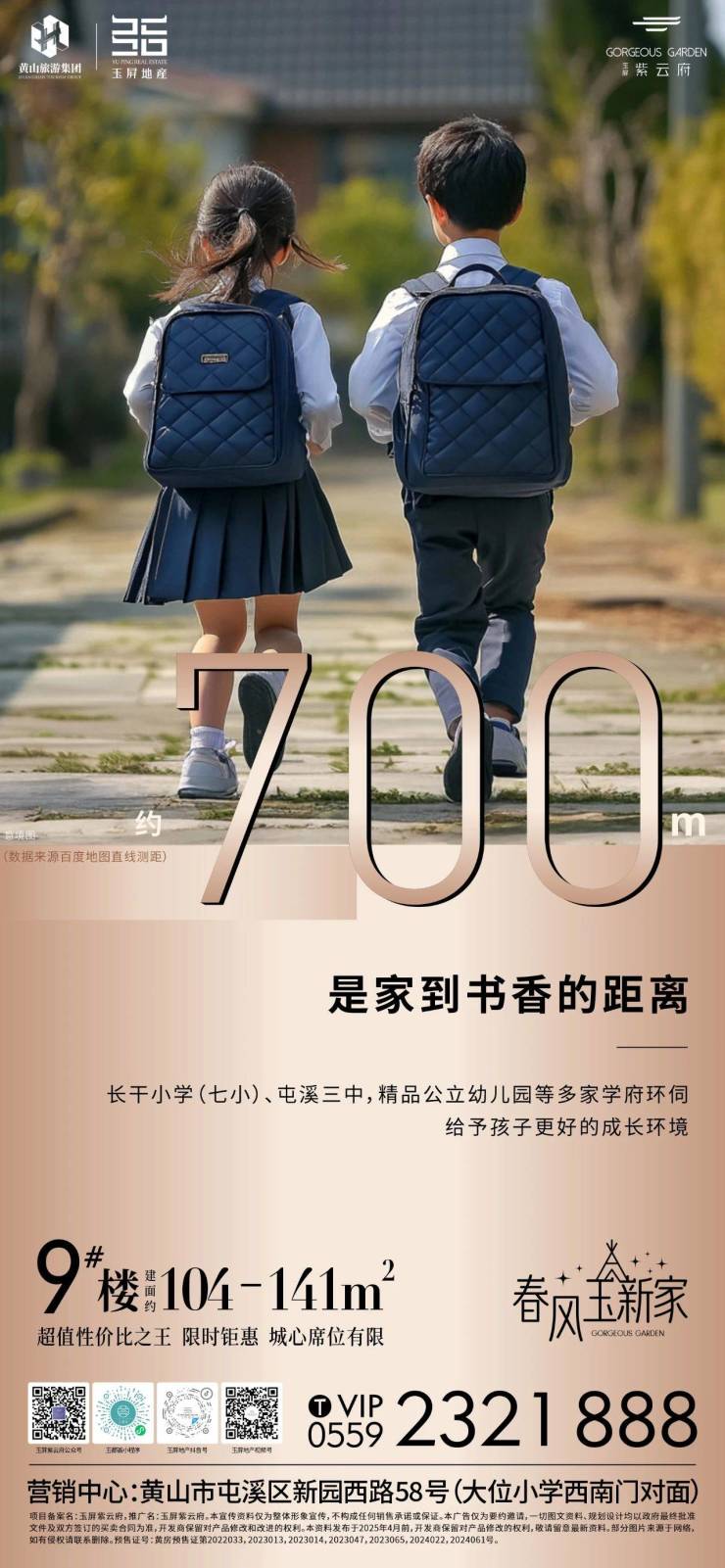 约700米,是家到书香的距离。玉屏紫云府周边长干小学(七小)、屯溪三,精品公立幼儿园等多家学府环伺,给予孩子更好的成长环境。玉屏紫云府9#楼瞰景高层,建面约104-141㎡实景准现房,超值性价比之王,限时钜惠…