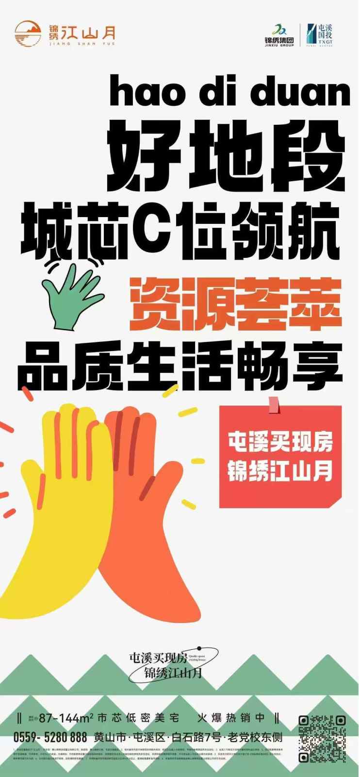 屯溪买现房,锦绣江山月。建面约87-144㎡市芯低密美宅热售中,均价12500元/㎡。