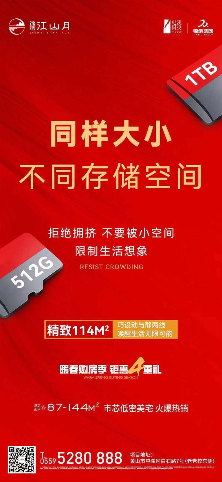 同样大小不同存储空间,拒绝拥挤,不要被小空间限制生活想象。锦绣江山月精致114㎡户型,巧设动与静两线,唤醒生活无限可能。暖春购房,钜惠四重好礼:来访礼,来访送好礼;认购礼,暖春认购优惠放肆享;签约礼 ,按时签约即享砸金蛋赢家电;安家礼,春日特惠房源限时抢。建面约87-144㎡市芯低密美宅热售中,均价12500元/㎡。