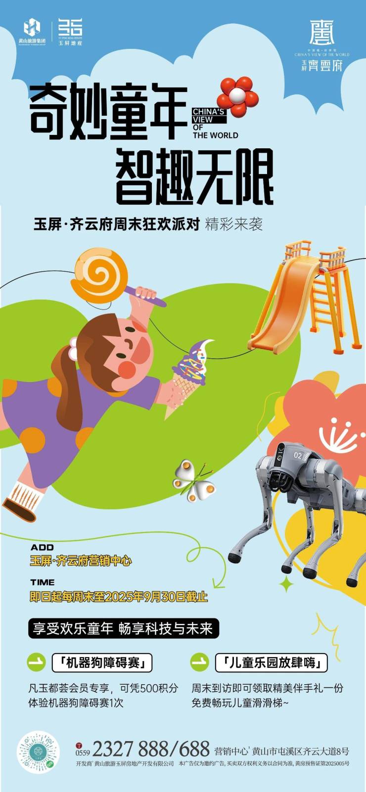 奇妙童年,智趣无限。玉屏齐云府周末狂欢派对,精彩来袭。即日起每周末至2025年9月30日截止,享受欢乐童年,畅亨科技与未来。