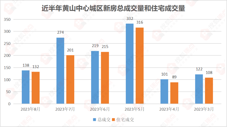 2023年8月黄山中心城区新房共成交138套,环比7月的274套,减少136套,下跌49.64%;同比去年8月的158套,减少20套,下跌12.66% 。