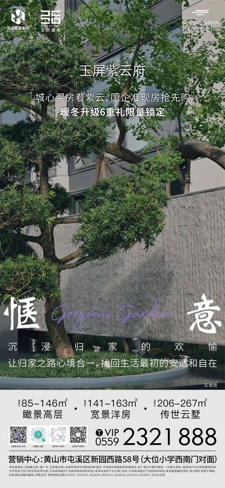 城心买房看紫云,国企准现房抢先购,暖冬升级6重礼限量锁定。玉屏紫云府,建面约85-146㎡瞰景高层、建面约141-163㎡宽景洋房、建面约206-267㎡传世云墅热售中。