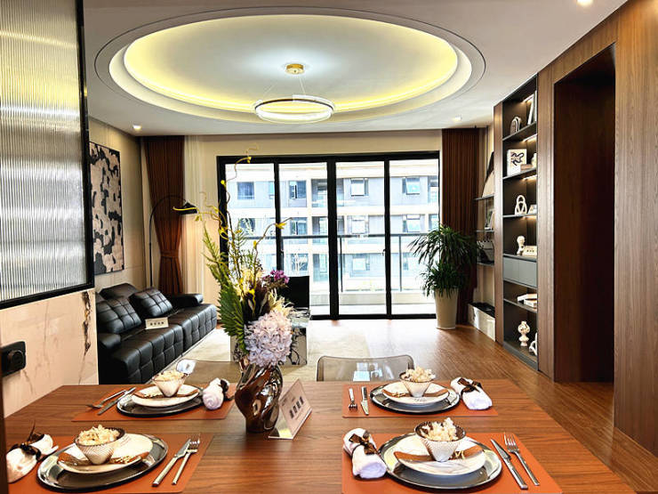 紫荆书院洋房匠造约5-6.8米的敞阔横厅,打破了传统空间的局促感,让客厅、餐厅形成流畅的洄游动线,无论是家庭聚会的欢声笑语,还是好友小聚的轻松惬意,都能在这片敞阔天地里自由铺展。而3.1米的层高,则从纵向维度提升了空间的奢适感,让采光、通风效果更上一层,观景视野也随之大幅延伸,每一次归家都像一场对“宽境生活”的沉浸式体验。