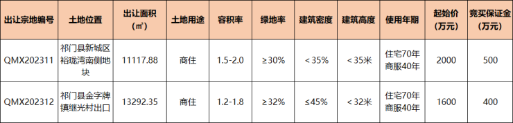 祁门2宗商住用地挂牌,起拍楼面地价668.72元/㎡起