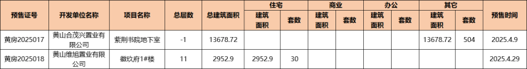 4月,黄山主城2盘获预售证,新增可预售住宅房源30套