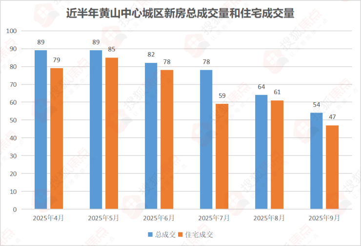 2025年9月,黄山中心城区新房成交54套,环比8月64套下降15.63%,同比去年9月的79套下降31.65%,呈现“环比、同比双降”态势,市场活跃度明显走弱。其中,普通住宅成交47套,成交均价10080元/㎡,较8月下跌110元/㎡,显示开发商在价格端依旧释放压力,降幅虽不大,但结构性优惠加剧。