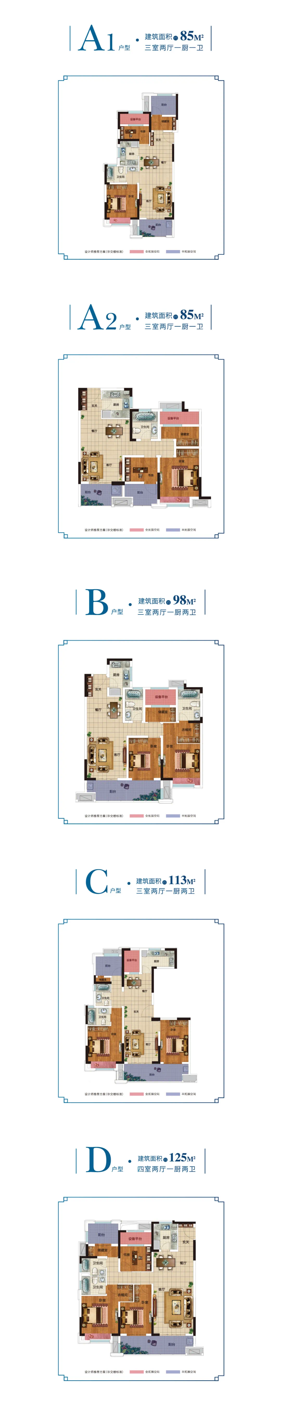 建筑面积约85-125㎡全明户型