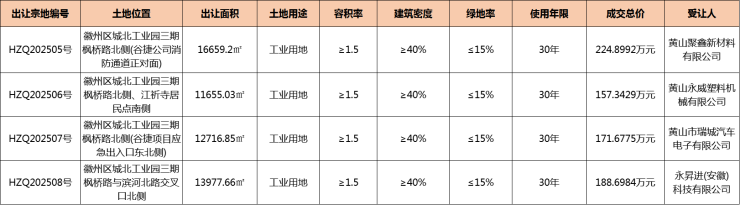 徽州区4宗工业用地成交