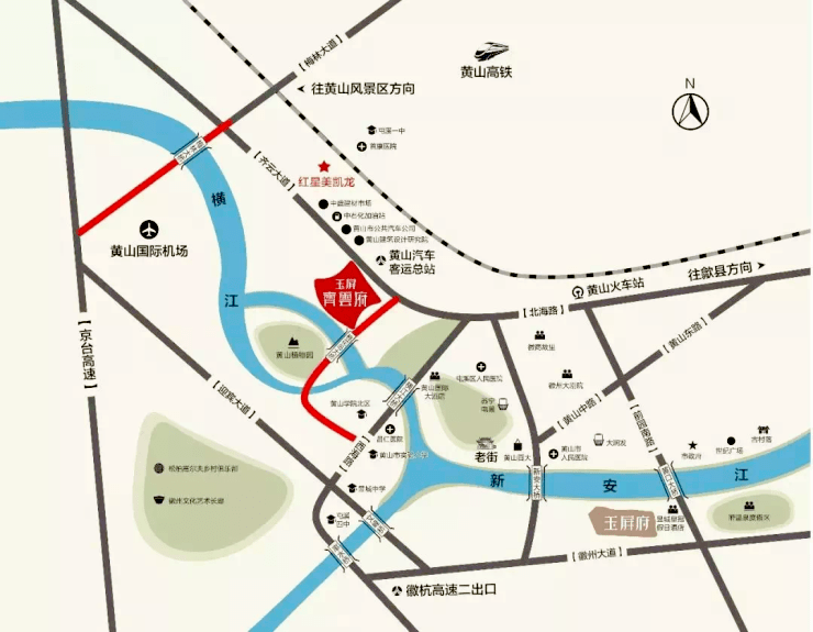 玉屏齐云府地处城市向西发展的核心地段,新潭镇齐云大道西南侧,由黄山旅游玉屏地产开发。地理位置得天独厚,交通十分便利。红星美凯龙商场、天润发超市近在咫尺。紧邻齐云大道,新二路、梅林南路、桃花岛南河大桥环伺左右,交通便利,十分钟之内也可以快速到达梅林商圈、黎阳商圈、百大商圈等。