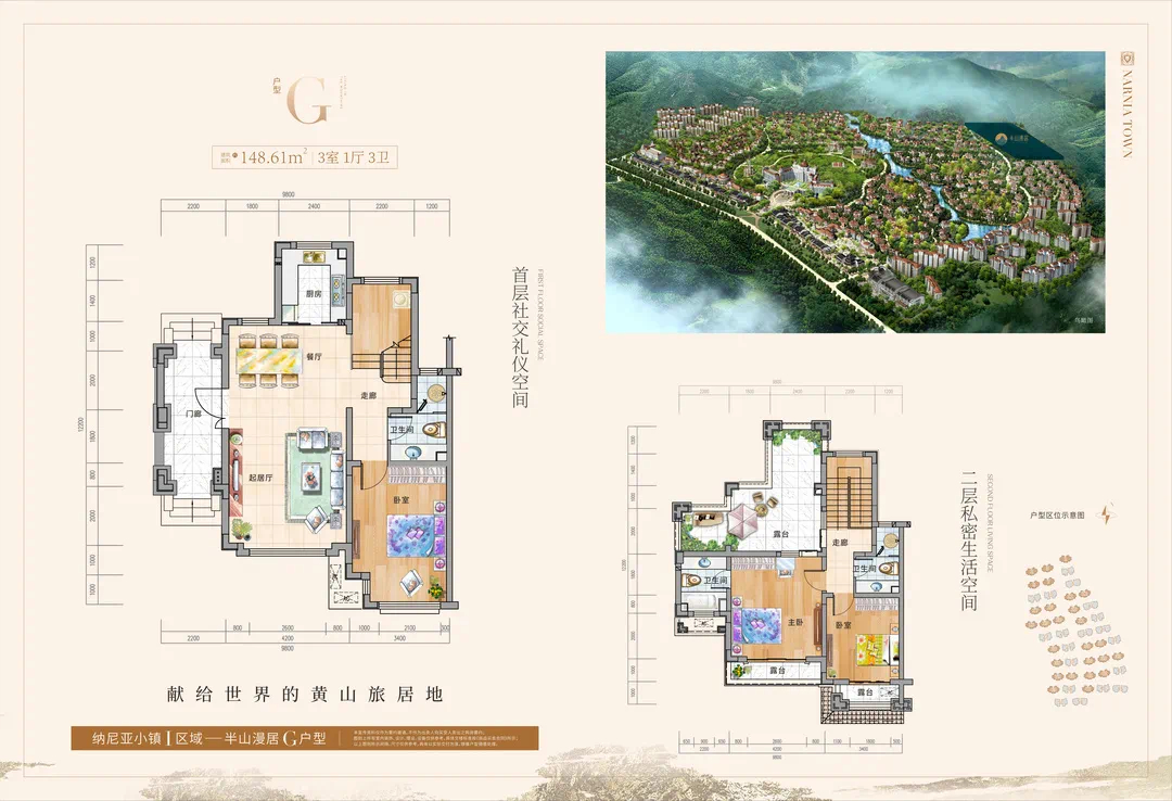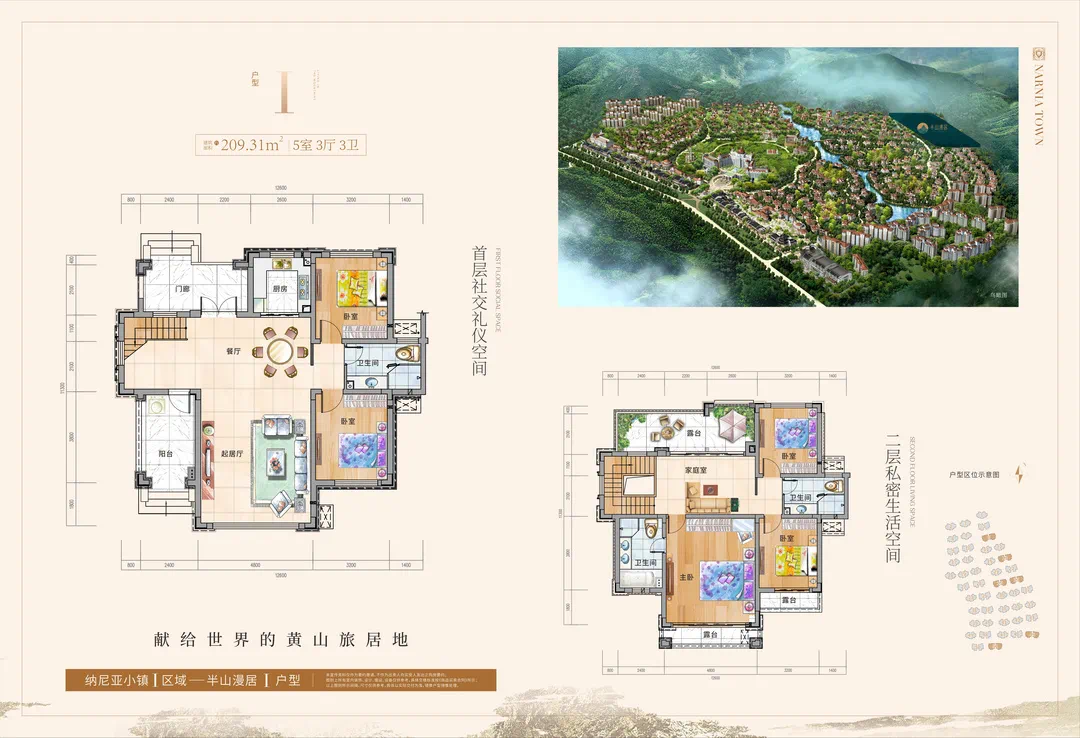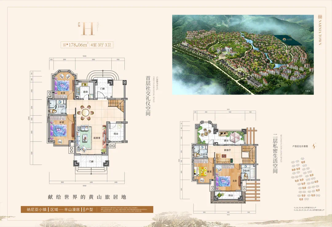 先天的环境优势+后天的产品资源,建面约148-458㎡的双拼山墅,是黄山难能可贵的在售现房,上下双层,多元户型选择,拥有70年产权更是兼具身份感与舒适度。
