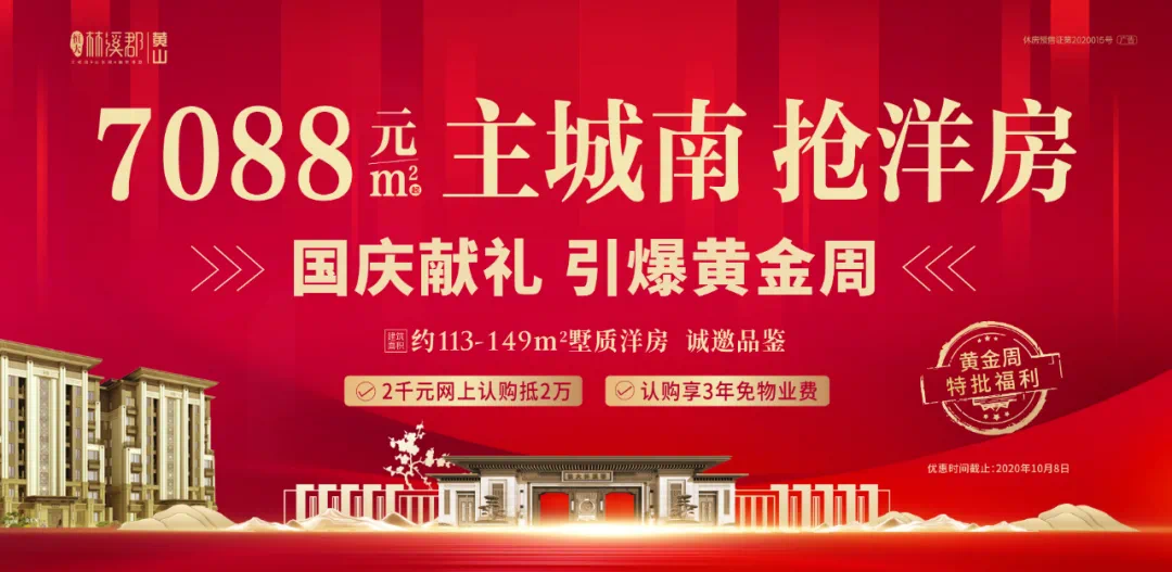 10月份,楼市迈入“金九银十”的第二阶段,黄山恒大林溪郡以“98折特大优惠”惊艳开场,打响了10月的卖房的号召,出场即王炸!