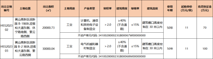 黄山中心城区2宗工业用地挂牌出让,出让面积合计75亩