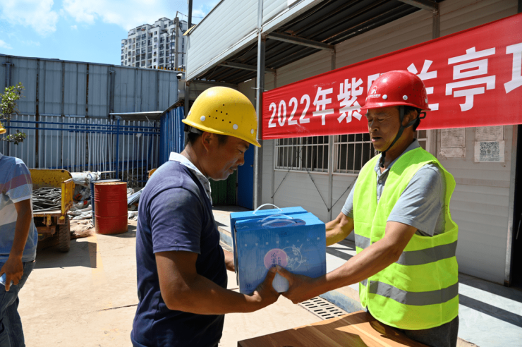 为了感谢一线建设者们的坚守。7月10日,紫阳兰亭项目部举行了送清凉主题活动,为奋战在一线的建设者们送去真挚的问候。