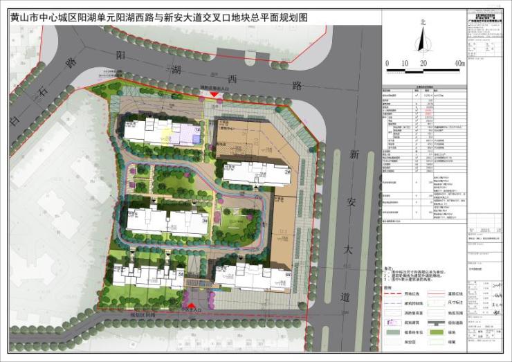 项目地块位于阳湖西路与新安大道交叉口,用地面积13299.16平方米,性质居住兼容商业,建设单位为荣旺达(黄山)置业发展有限公司。地块规划5栋住宅(3栋16层、1栋9层、1栋4层),沿新安大道和阳湖西路设置低层商业,项目规划总建筑面积36842.1平方米,其中计容建筑面积26598.3平方米,不计容建筑面积10243.8平方米,容积率2.0。项目1#住宅与柏悦公馆1#楼间距58.7米,与西侧相邻地块建筑间距9.4米;3#楼与西侧相邻建筑间距13.1米;经审查,方案建筑间距、建筑退让、日照分析及各项技术经济指标满足相关要求。根据有关规定,现将项目规划总平面图、效果图及日照分析图予以公示,如有意见和建议,请在公示期内向我局反馈。