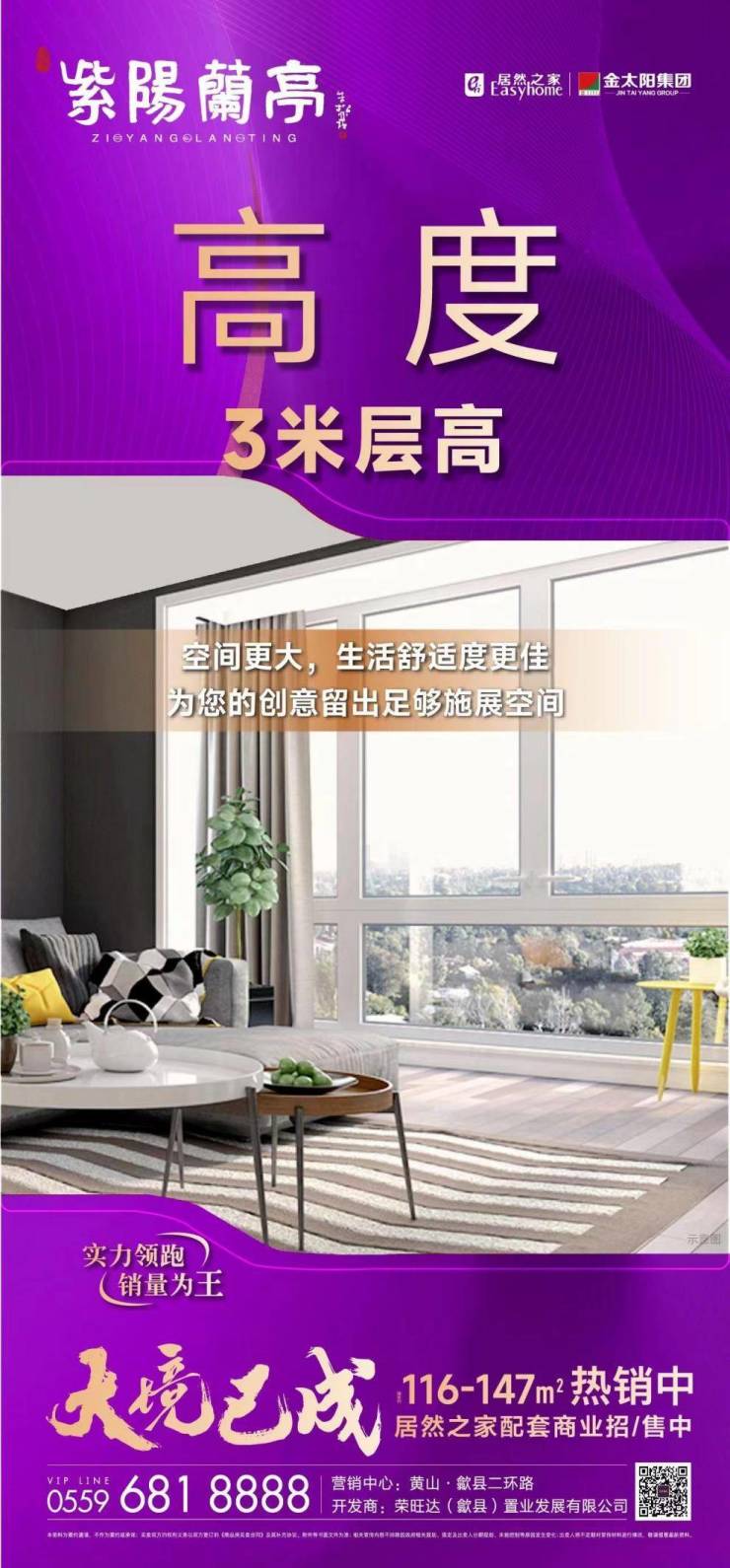 人生需要给梦想一个高度,生活也需要给空间一个高度。层高诠释人生品位,高度决定生活品质。紫阳兰亭匠造3米奢阔层高,空间更大,生活舒适度更佳,为创意留出足够施展空间。建面约116-147㎡新品火热销售中,居然之家配套商业招/售中。