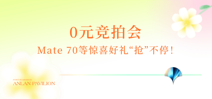 紧张刺激的0元竞拍即将火热开启!华为手环、华为FreeLace Pro 2耳机、华为哈尔斯智能保温杯、华为智选小适智能剃须刀、华为 WATCH FIT2活力款智能手表等诸多惊喜竞品轮番开拍,更有华为Mate 70手机劲爆登场,从实用好物到科技潮品,全程将持续高能!