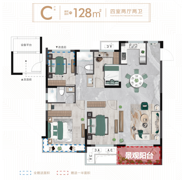 随着市场的演进,产品设计水平也在提升 。江南宸府1、6# 楼建筑面积约128㎡的户型,格外吸引眼球。