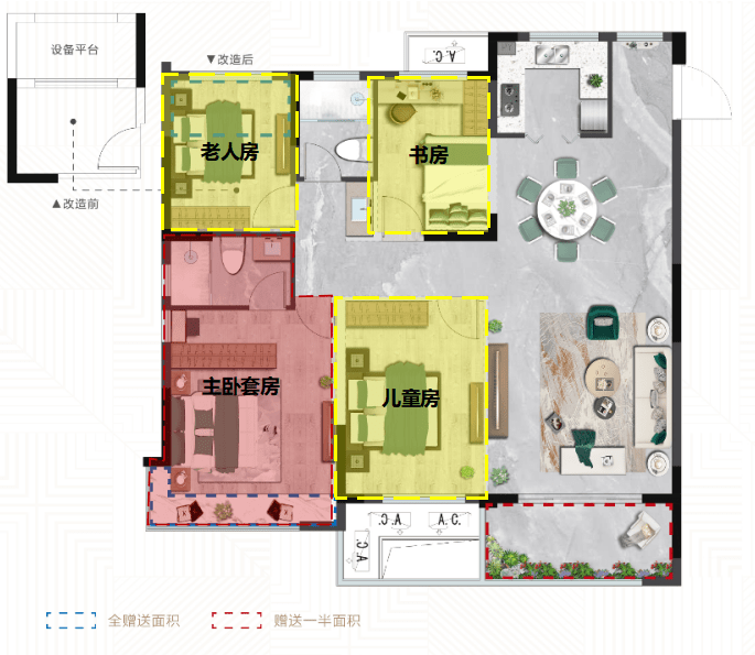 其余次卧室面积非常均衡,面宽约2.6-3米使得每个房间都能用作标准卧室,适合做儿童房、老人房、阳光书房。
