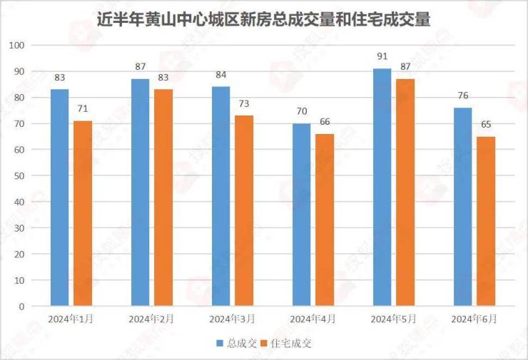 2024年6月黄山中心城区新房共成交76套,环比5月的91套,减少15套,下降16.48%;同比去年6月的219套,减少143套,下降65.3%。