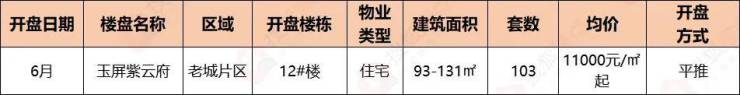 2024年6月,黄山中心城区玉屏紫云府1盘开盘加推,共计103套住宅房源。