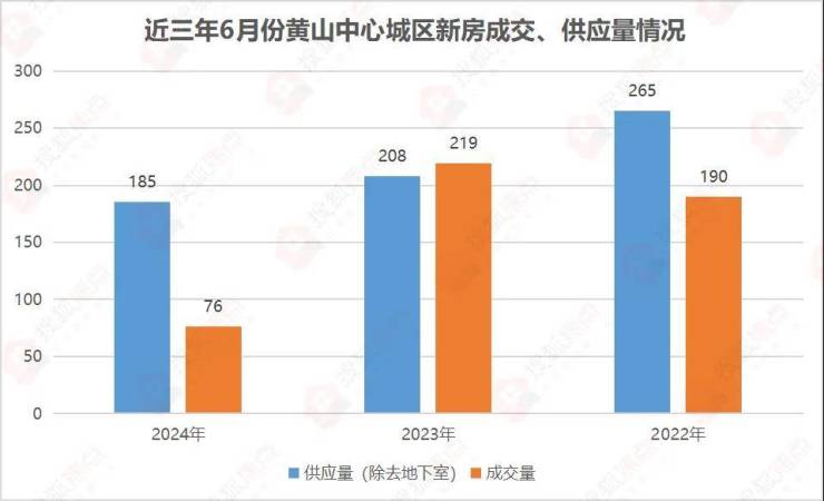 2024年6月,黄山中心城区新房共计成交76套,环比5月的91套下降16.48%,同比去年的219套下降65.3%。