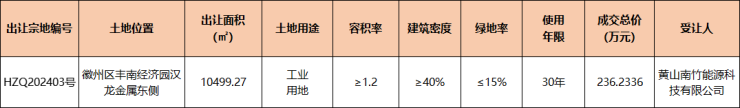 根据《招标拍卖挂牌出让国有建设用地使用权规定》(国土资源部令第39号),现将徽州区国有建设用地使用权挂牌出让成交结果公示如下:基本情况:公示时间为5日。公示期间,如有异议,请将书面意见反馈至黄山市自然资源和规…