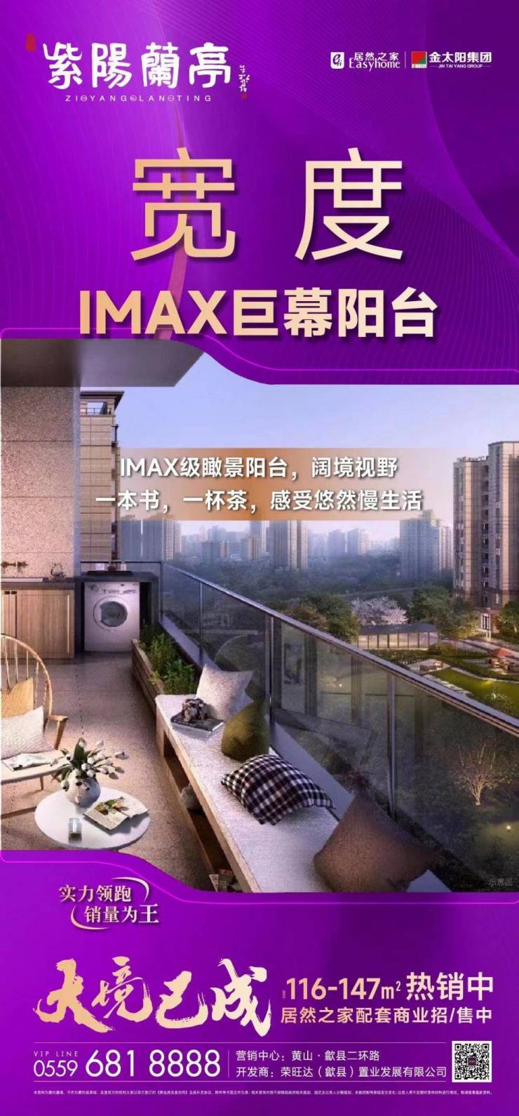 每一次转身,皆是一眼盛景。如今,人们对阳台的重视日益凸显,如果说卧室是人待得较长时间的地方,那么阔景阳台,则是赋予生活热爱的艺术品!紫阳兰亭,IMAX级瞰景阳台,阔境视野,一本书,一杯茶,感受悠然慢生活。建面约116-147㎡新品火热销售中,居然之家配套商业招/售中。