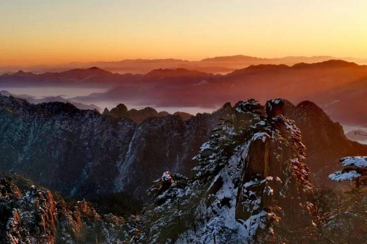 黄山的冬雪,是天地间最纯净的画卷。雪花纷纷扬扬,大自然用白色的画笔在山川间描绘着柔美的线条。漫步在山间小道,抬头一片湛蓝,放眼满目裹着银装的青松,仿佛置身于童话里的世界。
